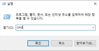 윈도즈키 + R 누르고 열기에서 cmd 타이핑후 엔터