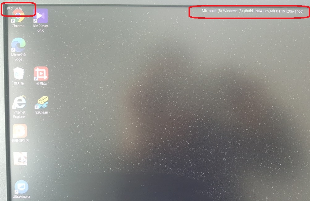 검정색 화면의 안전 모드를 만나게 됩니다.