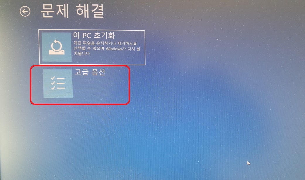 문제 해결 화면에서 고급 옵션을 클릭합니다.
